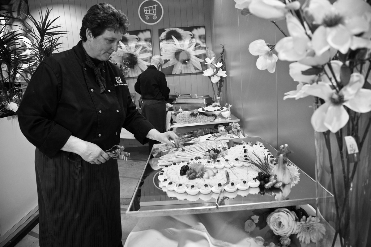 “Ik zorg ervoor dat ik makkelijk het buffet kan bijvullen zonder mensen in de weg te lopen.”