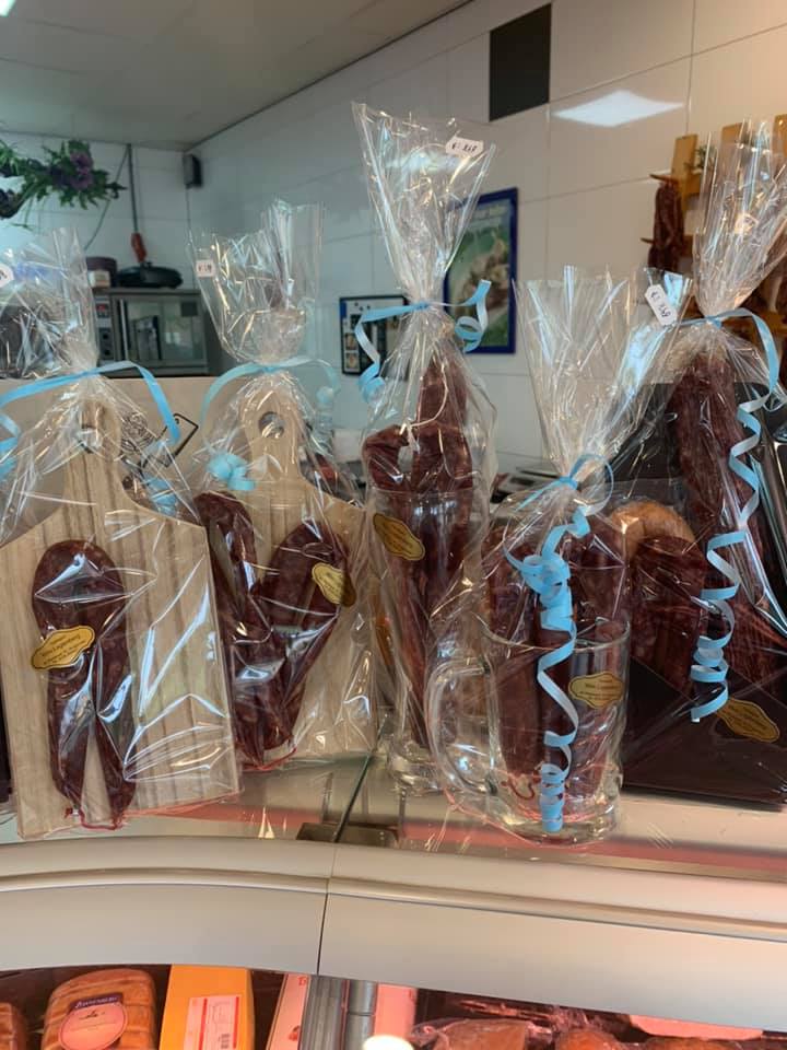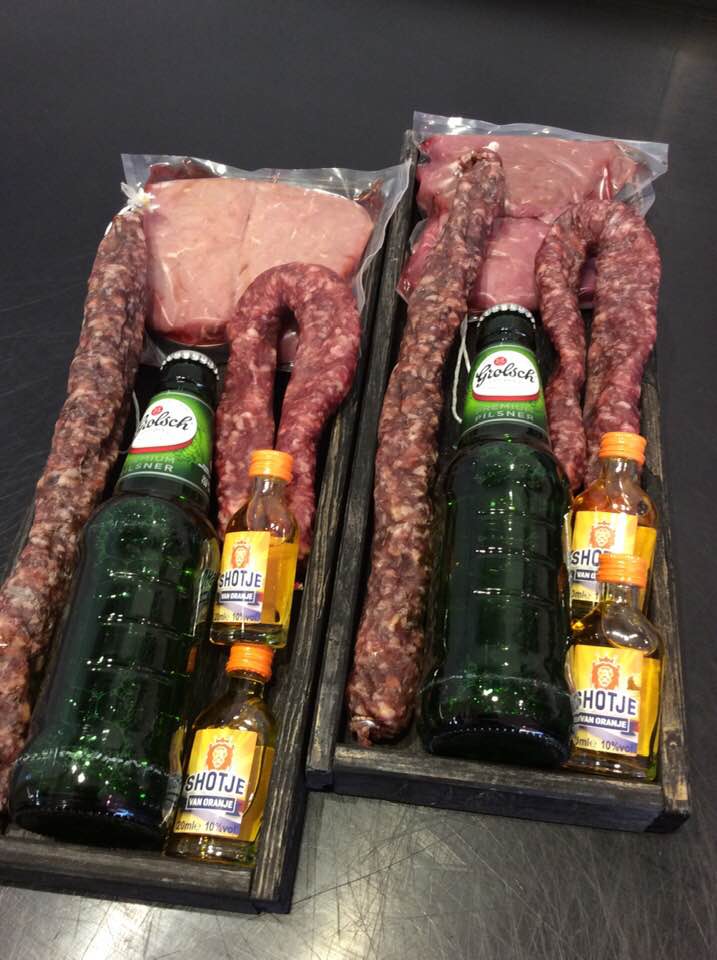 ''Een heerlijk worst pakketje met een leuk bierglas of een mooie vleesschotel of een waardebon.'' - Topslagerij Logtenberg
