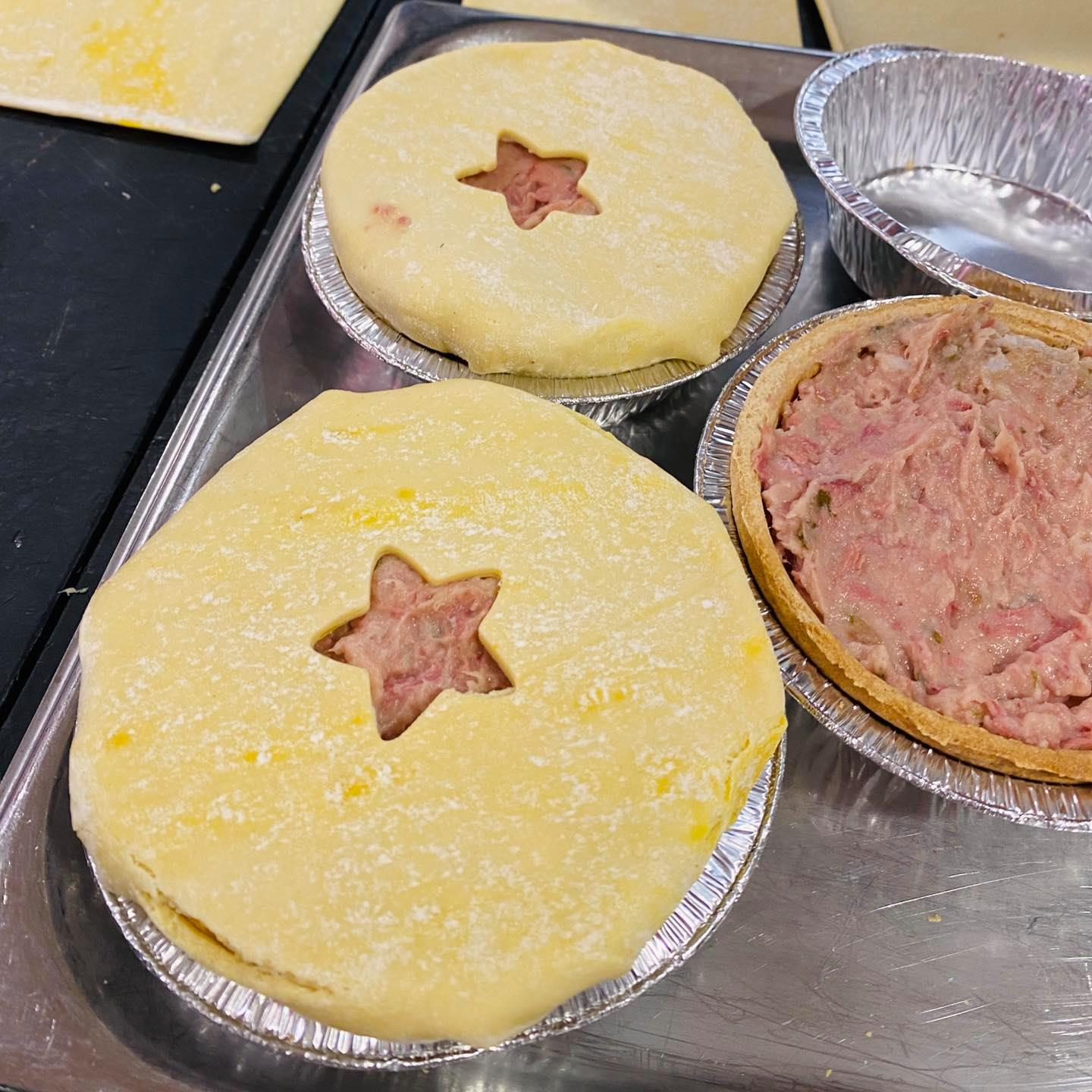 ''Nieuw heerlijke huisgemaakte pie’s, gevuld met kipragout met champignons of met runderragout. '' - Slagerij Putman